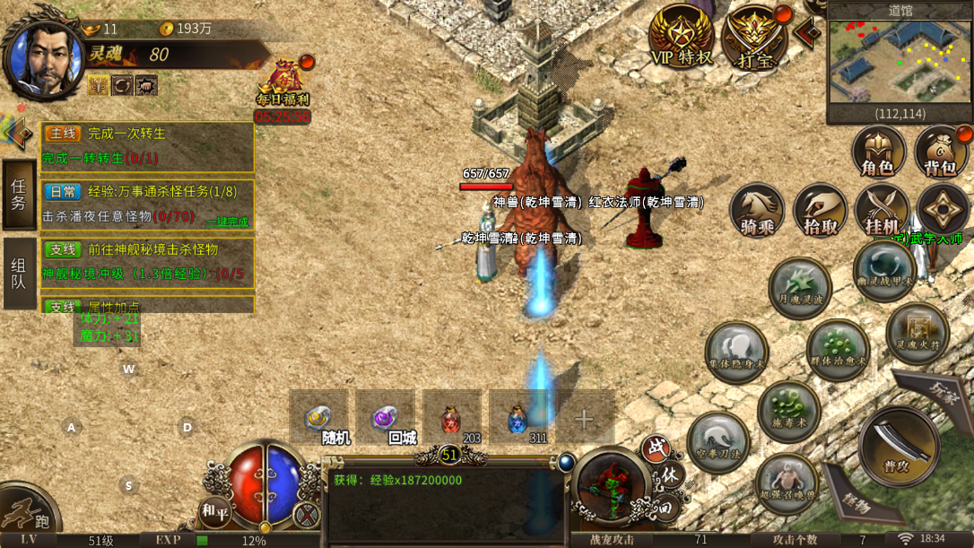 4、传奇3微变版 最后一款就是今年最新推出的微变版传奇3手游,这个版本也是高度还原了端游的画面,但是在玩法上进行了稍加改造,开局就能获取永久战宠“红衣法师”,还能通过喂宠物饲料,进化成为霸天教主,可以群攻周围的怪物,相当给力。